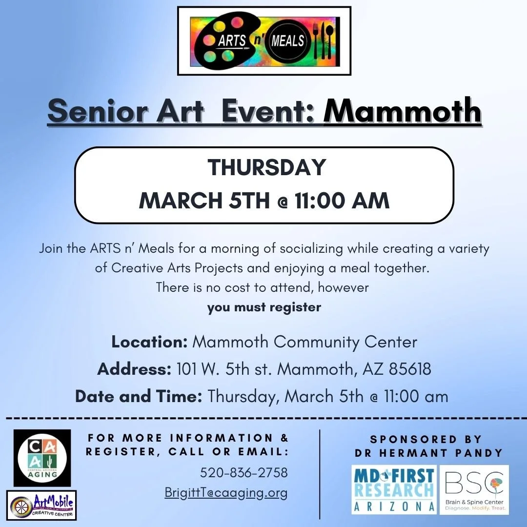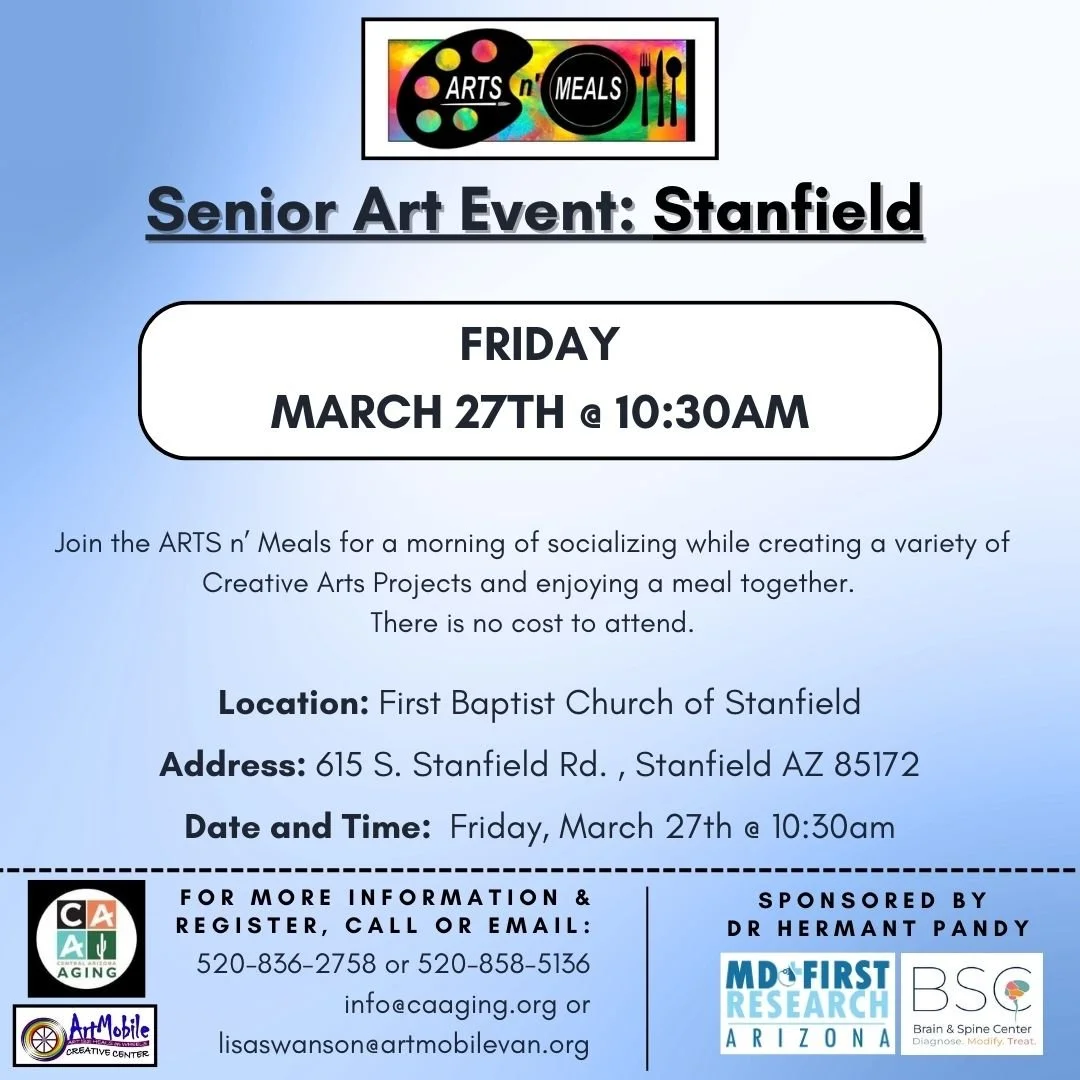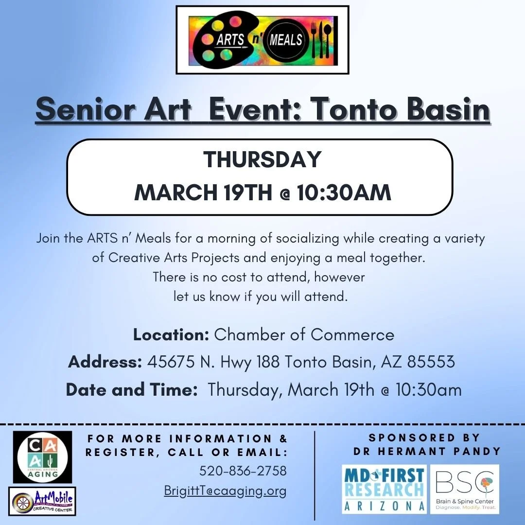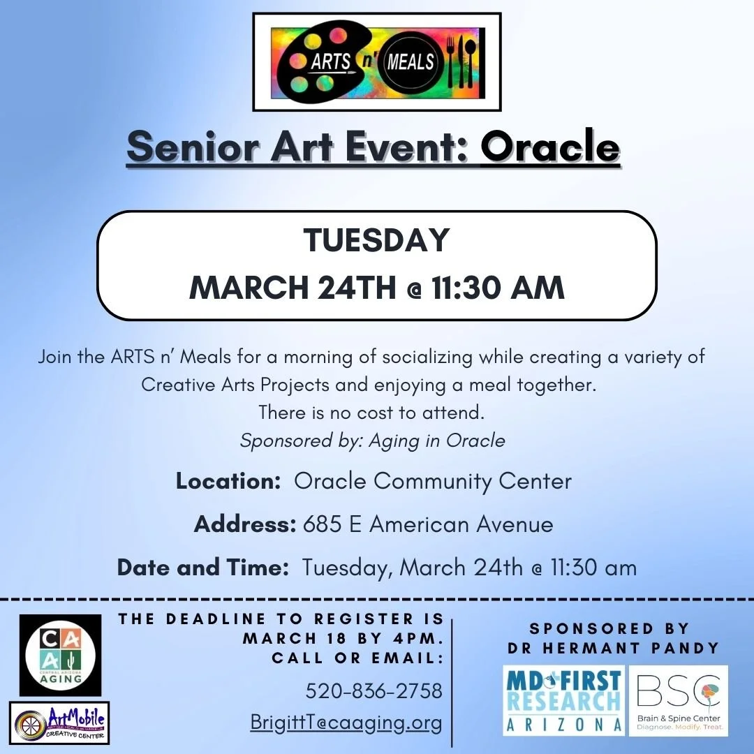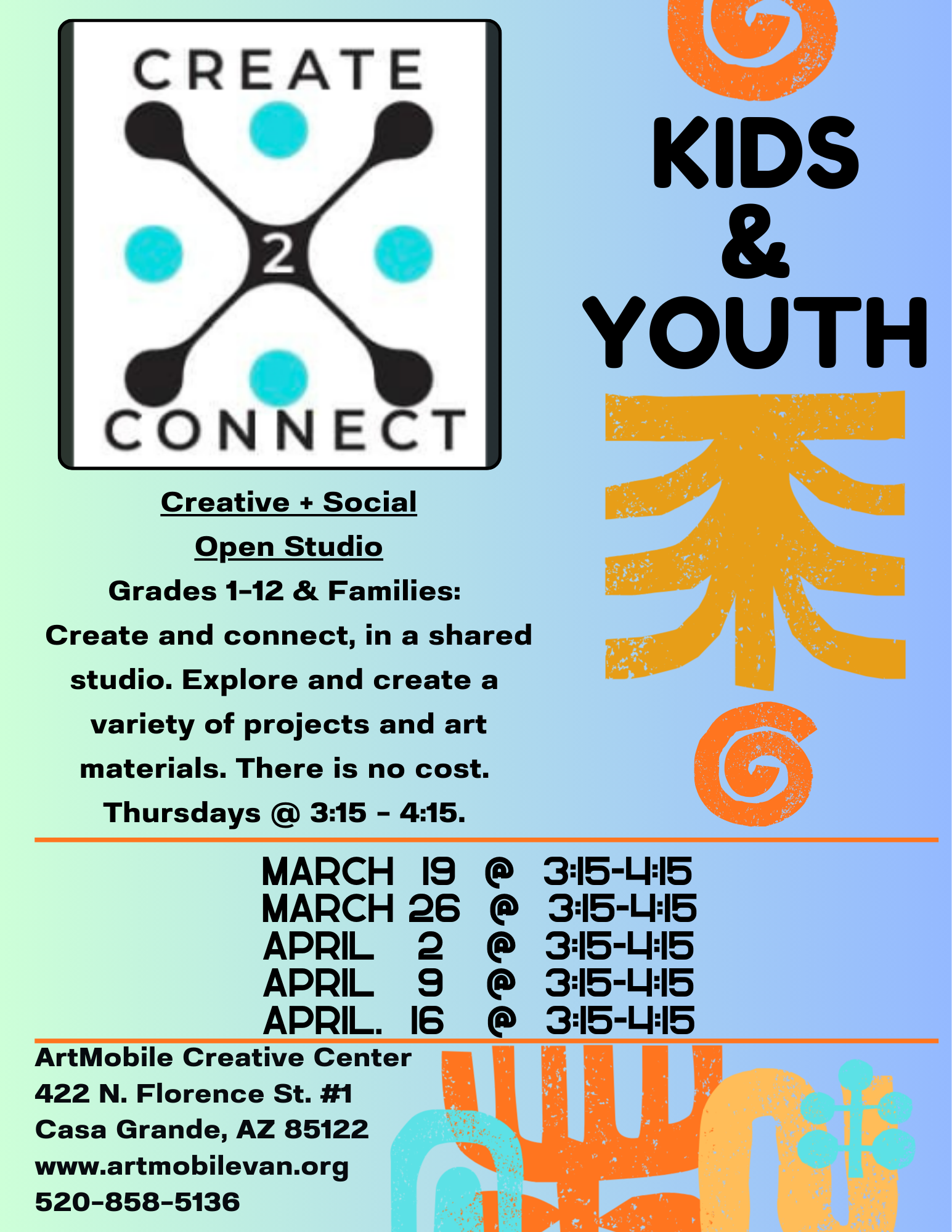 Partnering with Central Arizona Aging for their Arts n’ Meals program, ArtMobile is contracted for program and project design and facilitating sessions. ARTS n’ MEALS pairs creative and social engagements for older adults in remote rural communities that have limited resources. The program focuses on addressing loneliness and social isolation among older adult and special needs populations of all ages, a critical crisis during COVID-19 and after. Research has shown that engaging in creative arts activities, even for short periods of time, reduces stress, enhances coping, and promotes well-being.